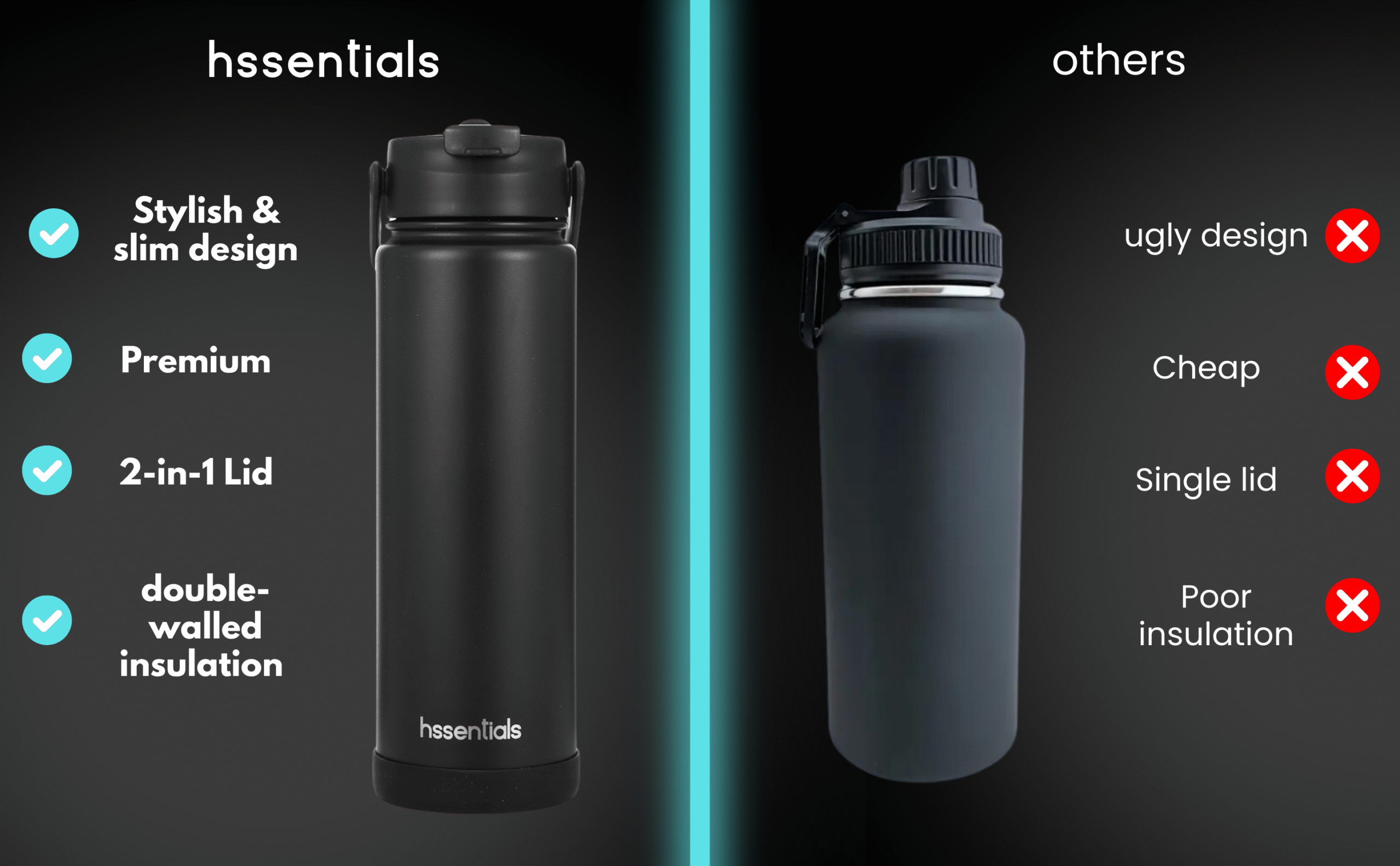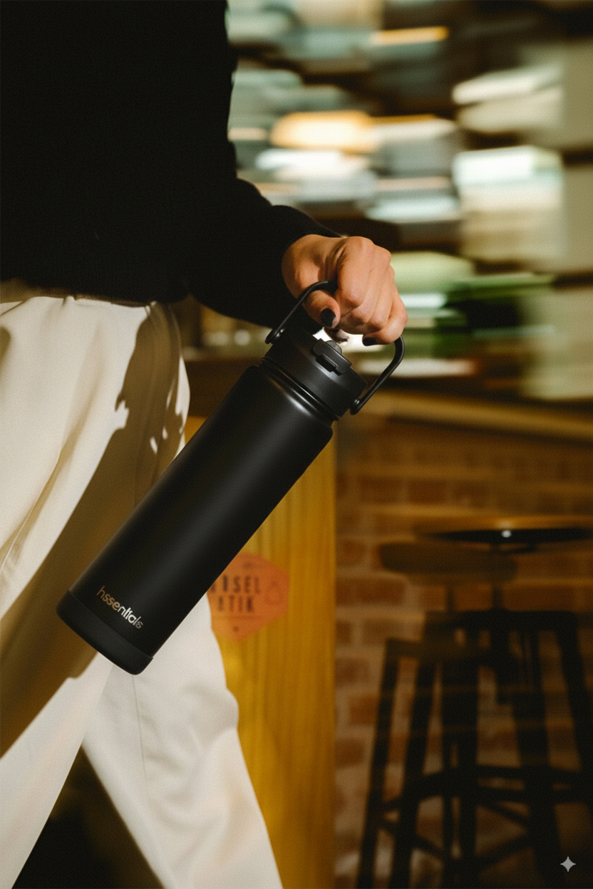 Switch effortlessly between sip or chug with Hssentials’ Hybrid Dual Lid.